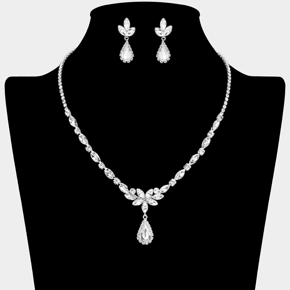 Marquise Rhinestone Trim Oval Dangle Necklace Jewelry Set