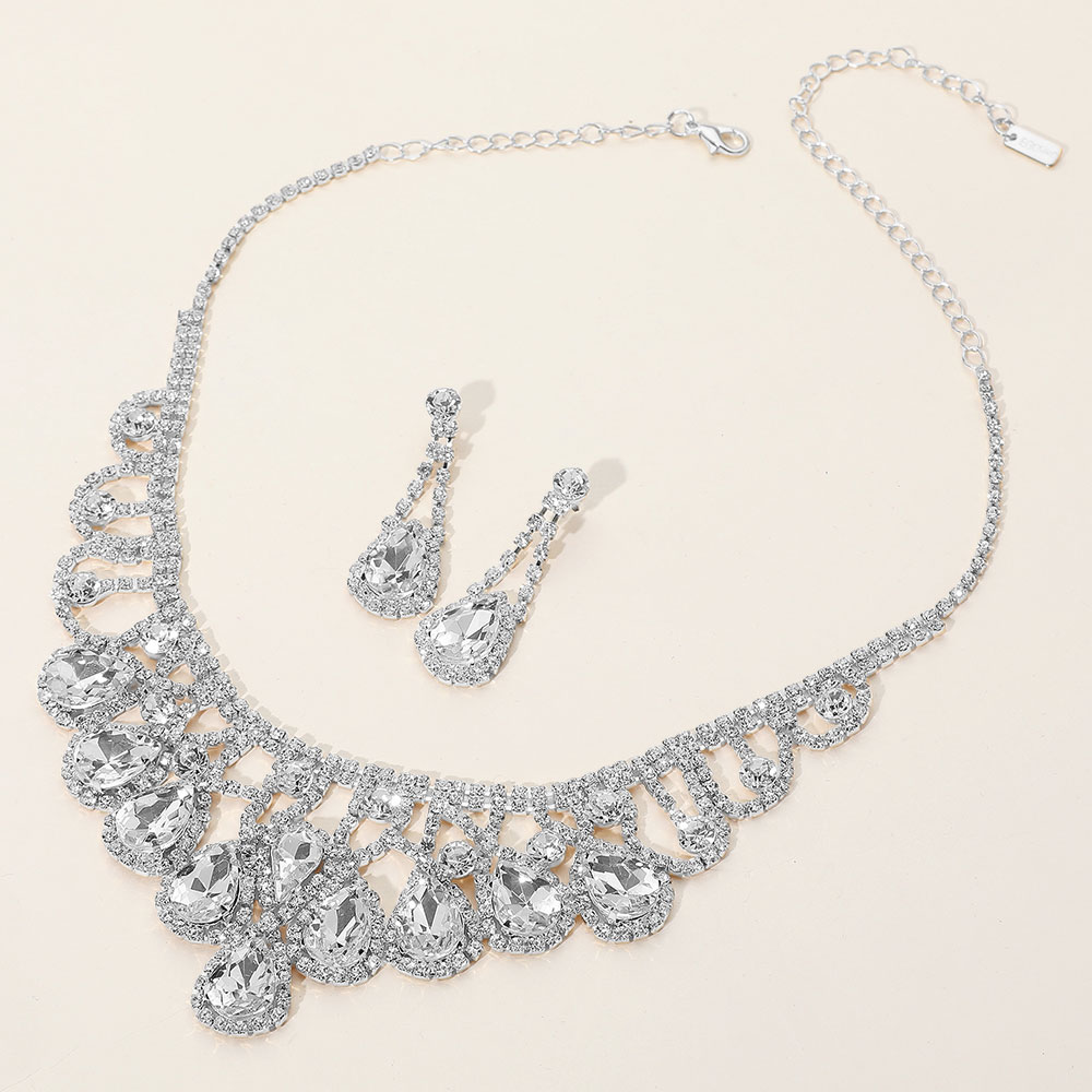 Teardrop Stone Embellished Rhinestone Paved Collar Necklace