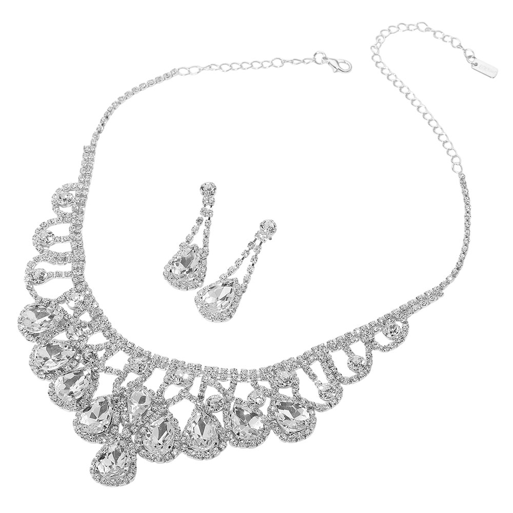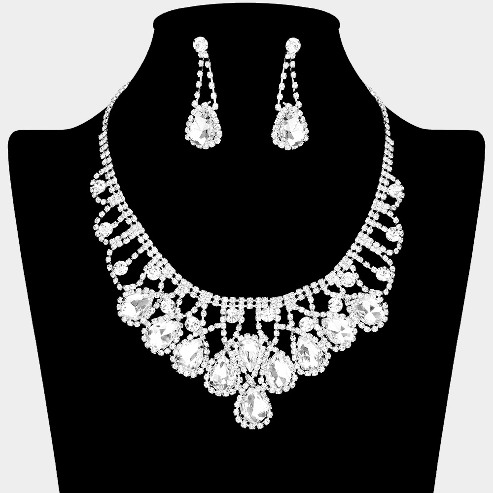 Teardrop Stone Cluster Pointed Marquise Stone Cluster Embellished Evening Necklace