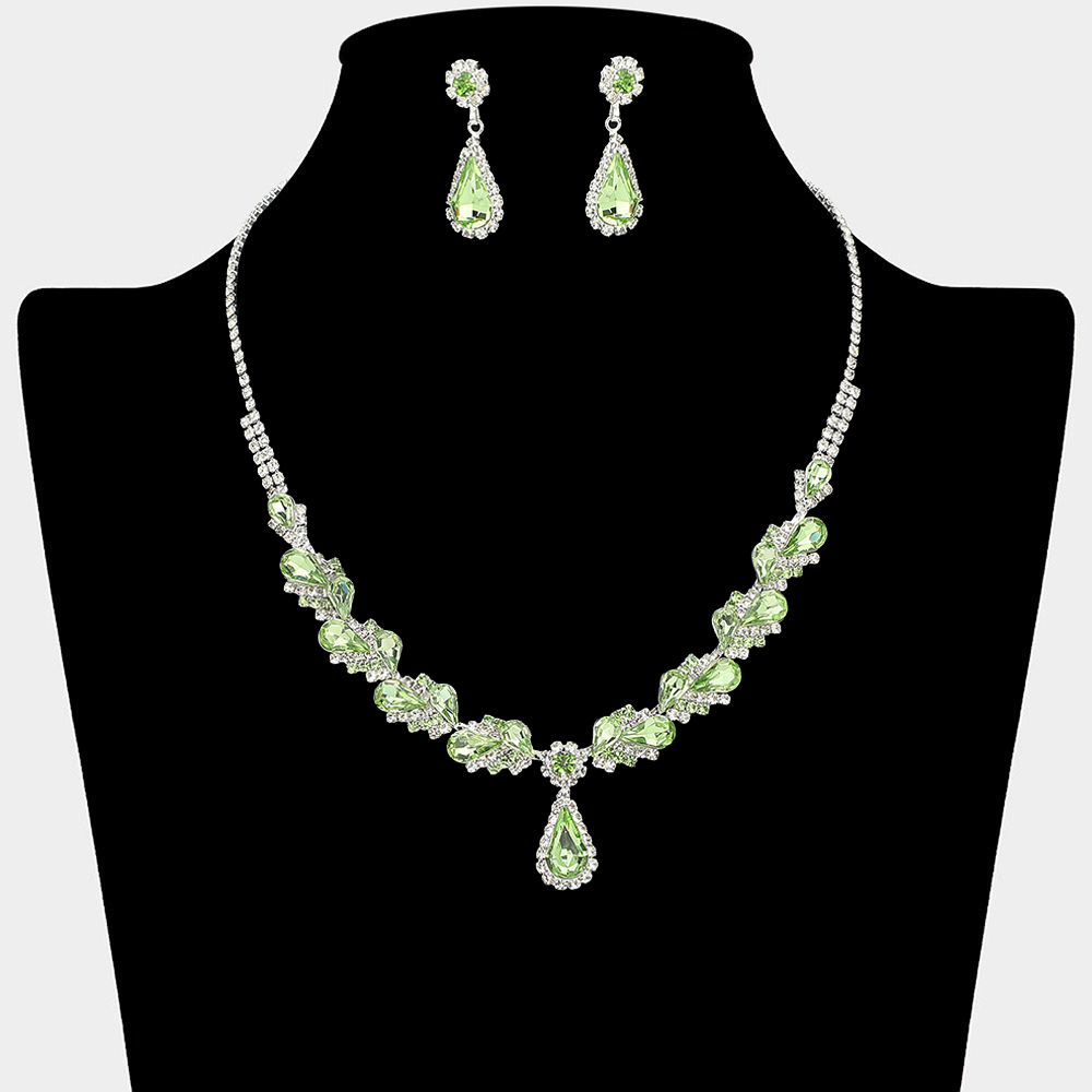 • This teardrop statement necklace and earring set features layered sparkle with elegant drop accents that frame the neckline beautifully. Designed for special occasions, formal events, and evening styling, it offers a refined coordinated look ideal for boutiques and gift-ready collections.