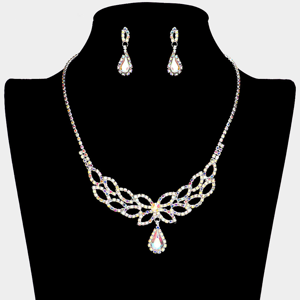 Teardrop Stone Pendant Pointed Rhinestone Paved Necklace