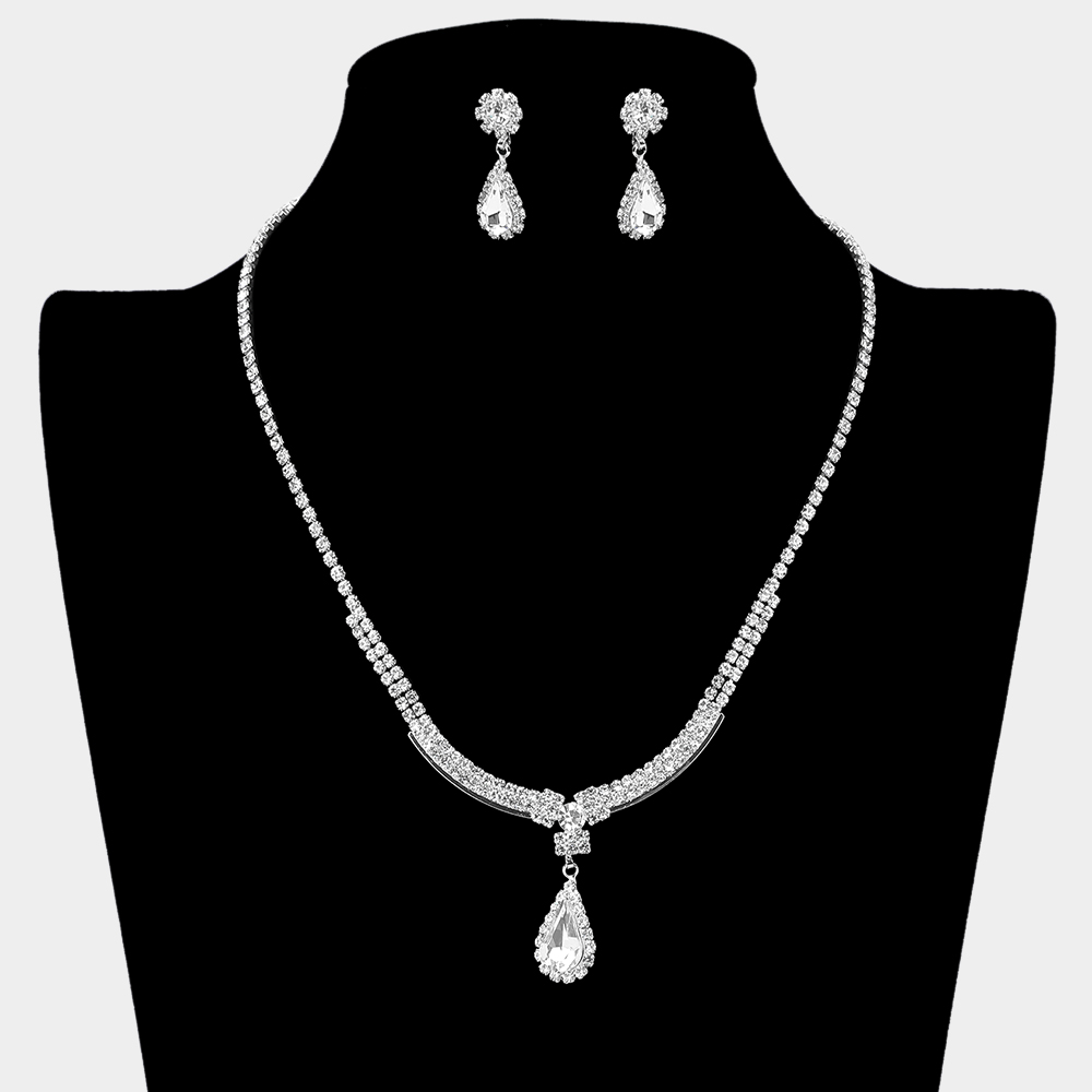 Teardrop Stone Pointed Rhinestone Paved Necklace