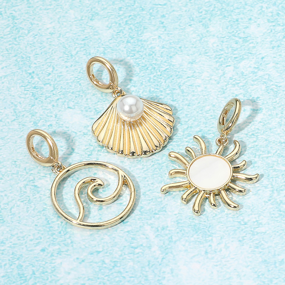 Details • Size : 1.6" L - 1.75" L • Bring coastal vibes to your accessories with this ocean-inspired charm set featuring a radiant sun, wave symbol, and seashell design. Perfect for keychains, necklaces, or bracelets, these lightweight pendants add a unique seaside touch. Great for beach lovers or thoughtful gift ideas. • Lead and Nickel Compliant