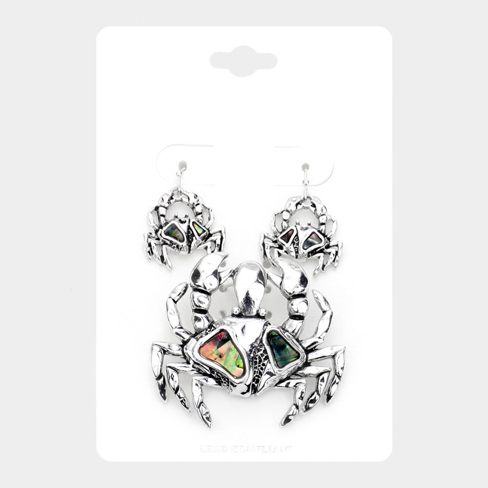Antique Metal Abalone Pointed Butterfly Pendant Necklace