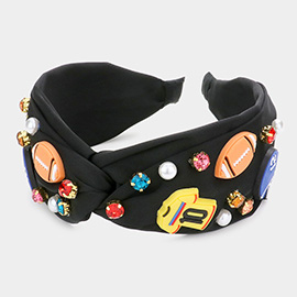 Gameday Football Sequin Seed Beaded Stone Cluster Embellished Knot Headband