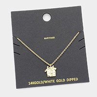 14K Gold Plated CZ Stone Paved Square Pendant Two Tone Double Layered Chain Necklace