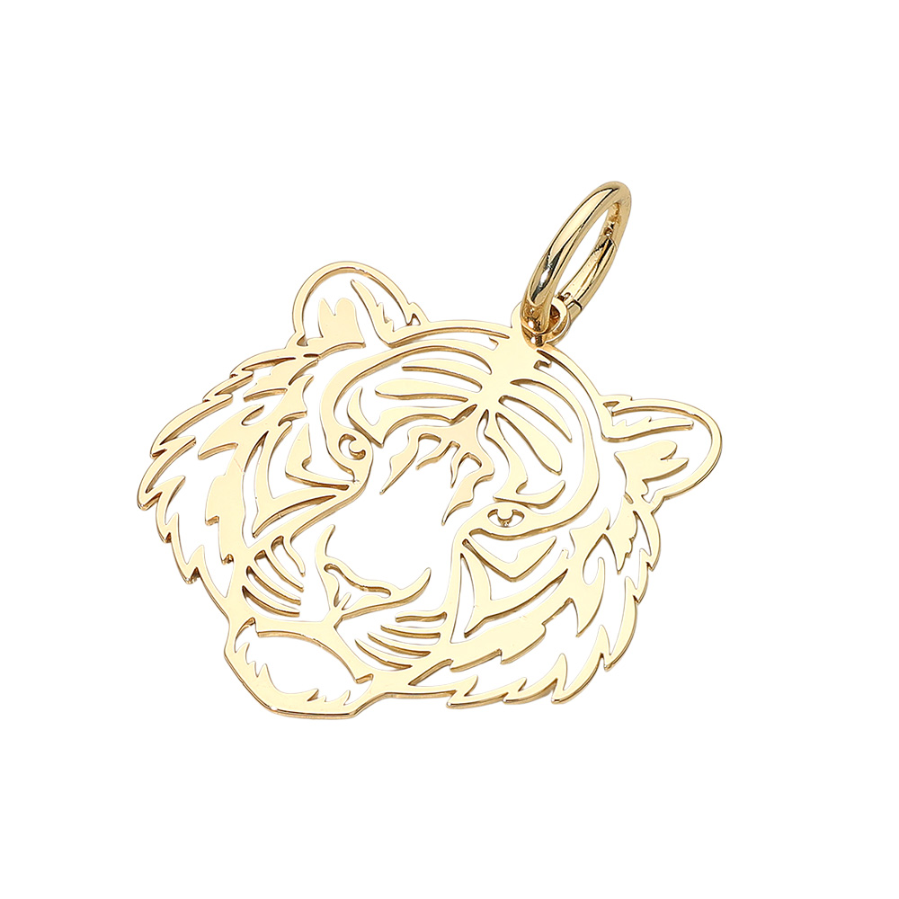 • Stylish pendant charm featuring a detailed cutout tiger face design. Perfect as a bold jewelry accent, this charm adds a touch of strength and elegance to necklaces or bracelets for a standout accessory look.