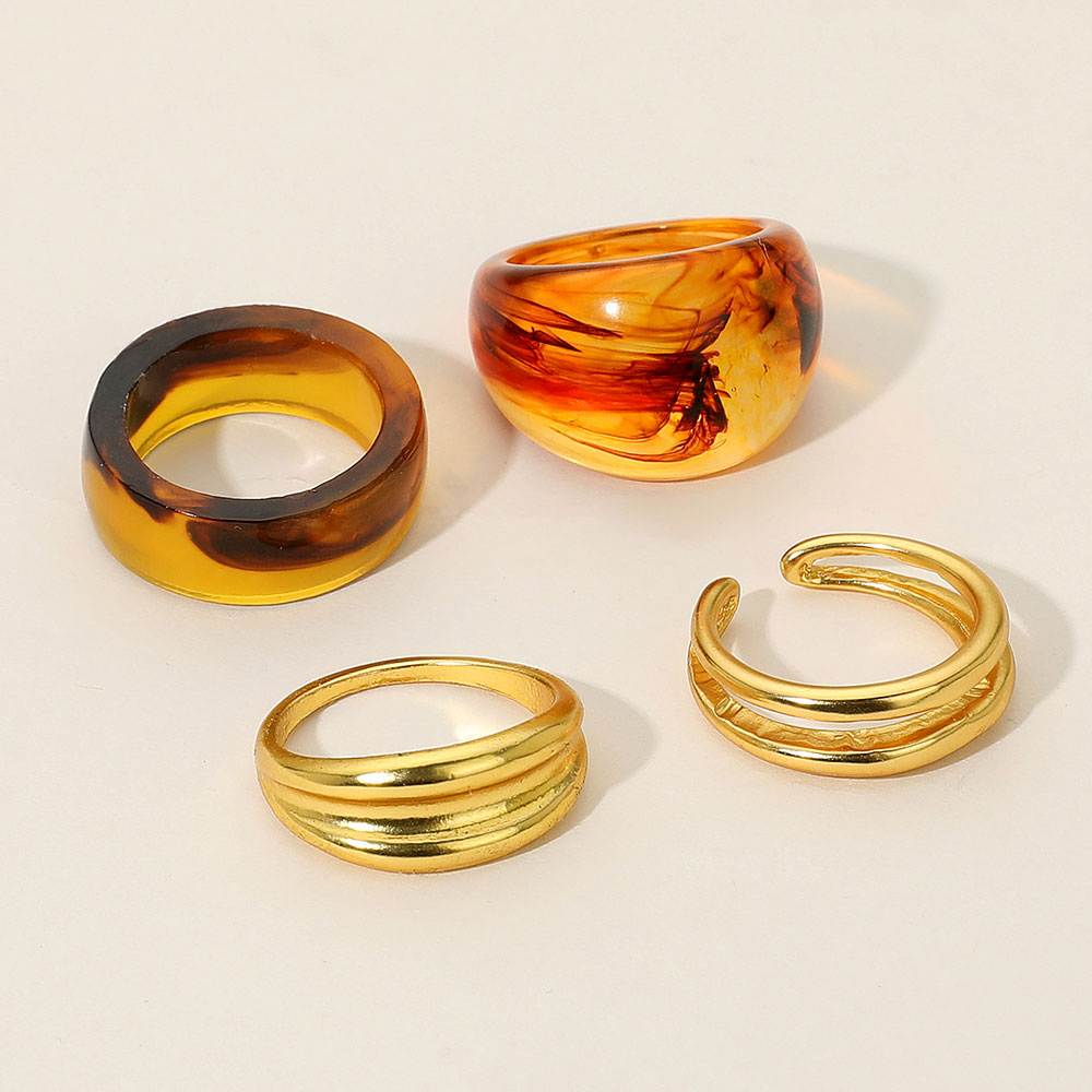 4PCS - Chunky Mixed Shaped Resin Metal Ring Set