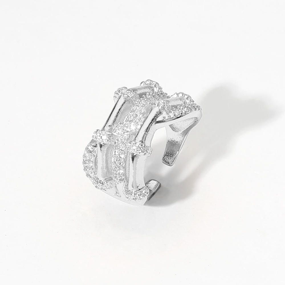 White Gold Dipped CZ Stone Double Row Mini Half Hoop Earrings