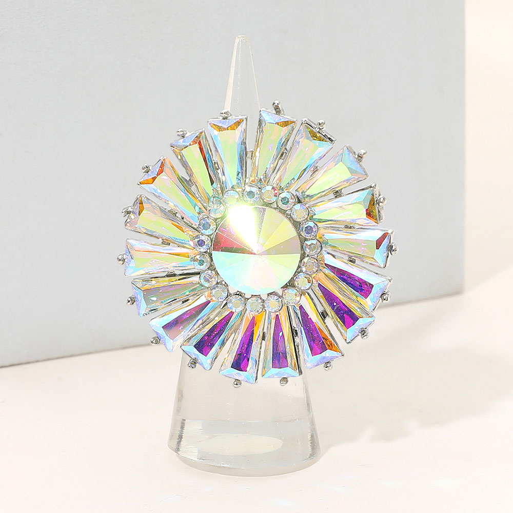 • Bold sunburst statement ring featuring a faceted center and radiant surrounding accents for dramatic sparkle and eye-catching impact. Ideal for parties, special occasions, gifting, or elevating everyday looks with a glamorous focal piece that delivers standout style and confidence.