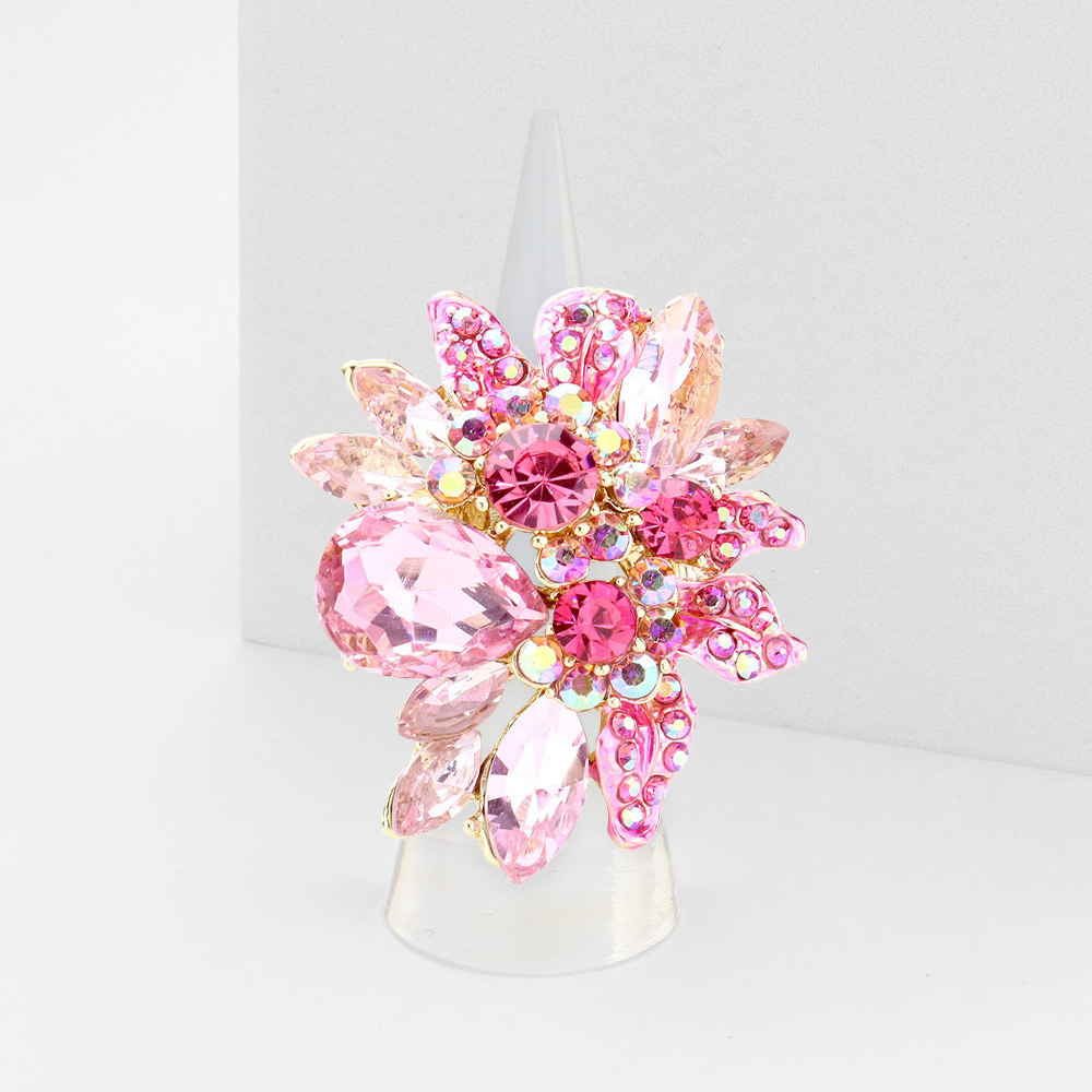 Rectangle Stone Cluster Western Metal Flower Link Stretch Bracelet