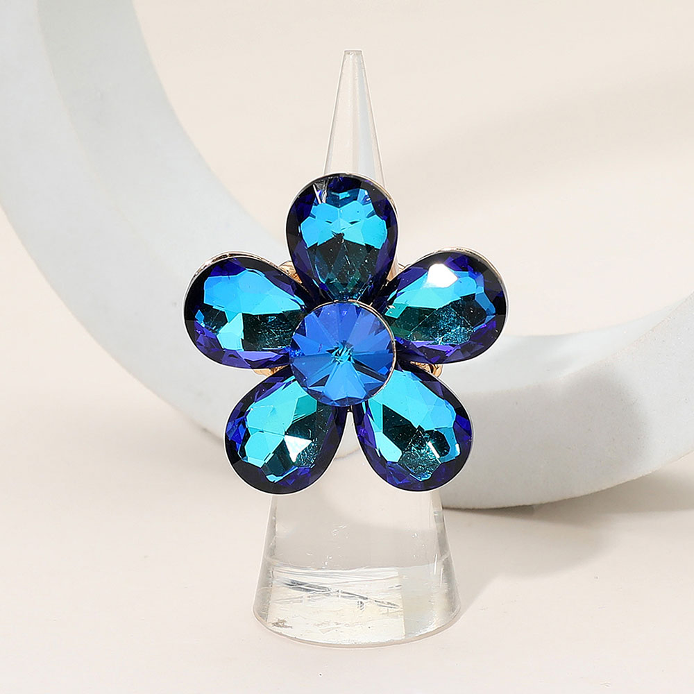 • Elegant flower-shaped statement ring featuring a dazzling faceted petal design that catches the light beautifully. Perfect for adding a bold, eye-catching accent to any outfit, this gem-inspired accessory enhances your style with its unique shape and sparkling radiance.