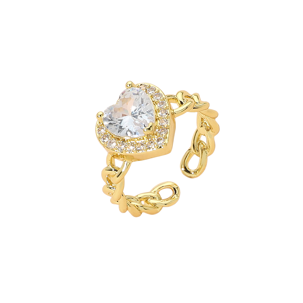 • Eye-catching adjustable ring featuring a bold heart centerpiece framed with sparkling stone details and a modern chain-inspired band. Designed to stand out on its own or pair with layered looks, this ring adds expressive charm to boutique jewelry collections and gift assortments.