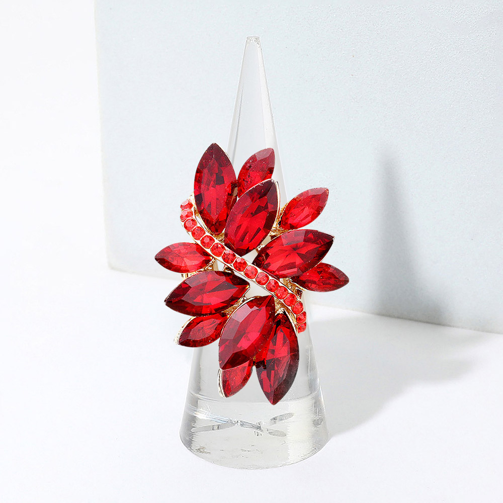 • Shine bright with a statement cocktail ring designed in a striking crystal leaf motif. Featuring multi-faceted stones and dazzling sparkle, this glamorous accessory is perfect for parties, special occasions, or elevating everyday outfits with bold elegance.
