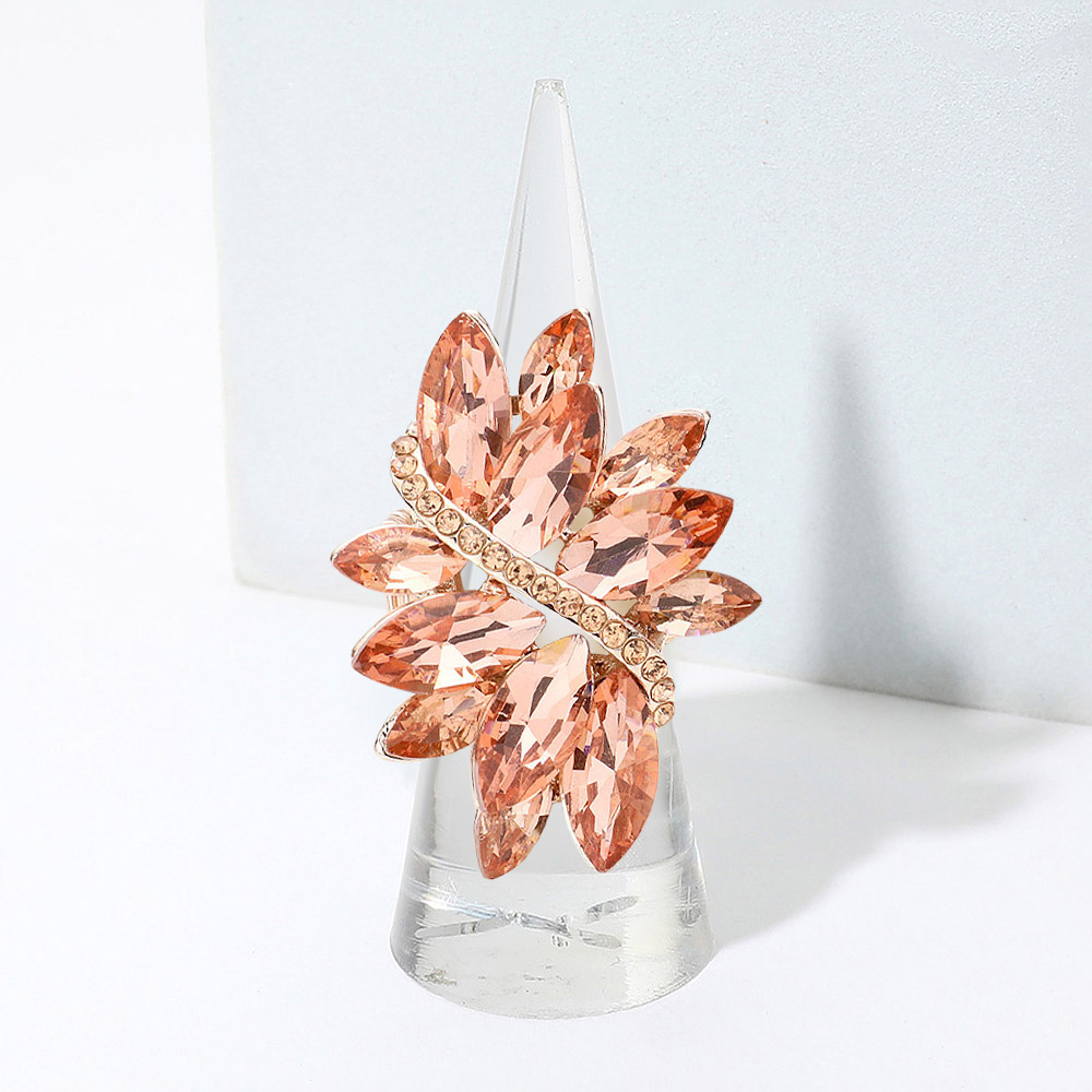 • Shine bright with a statement cocktail ring designed in a striking crystal leaf motif. Featuring multi-faceted stones and dazzling sparkle, this glamorous accessory is perfect for parties, special occasions, or elevating everyday outfits with bold elegance.