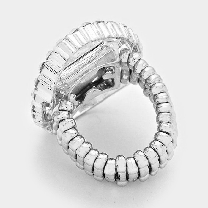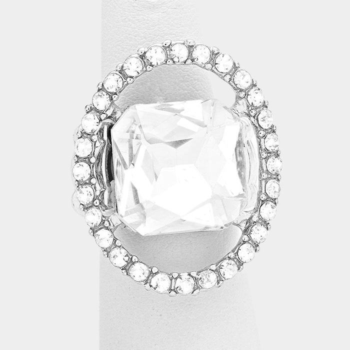 Square Stone Center Rhinestone Paved Rim Stretch Ring
