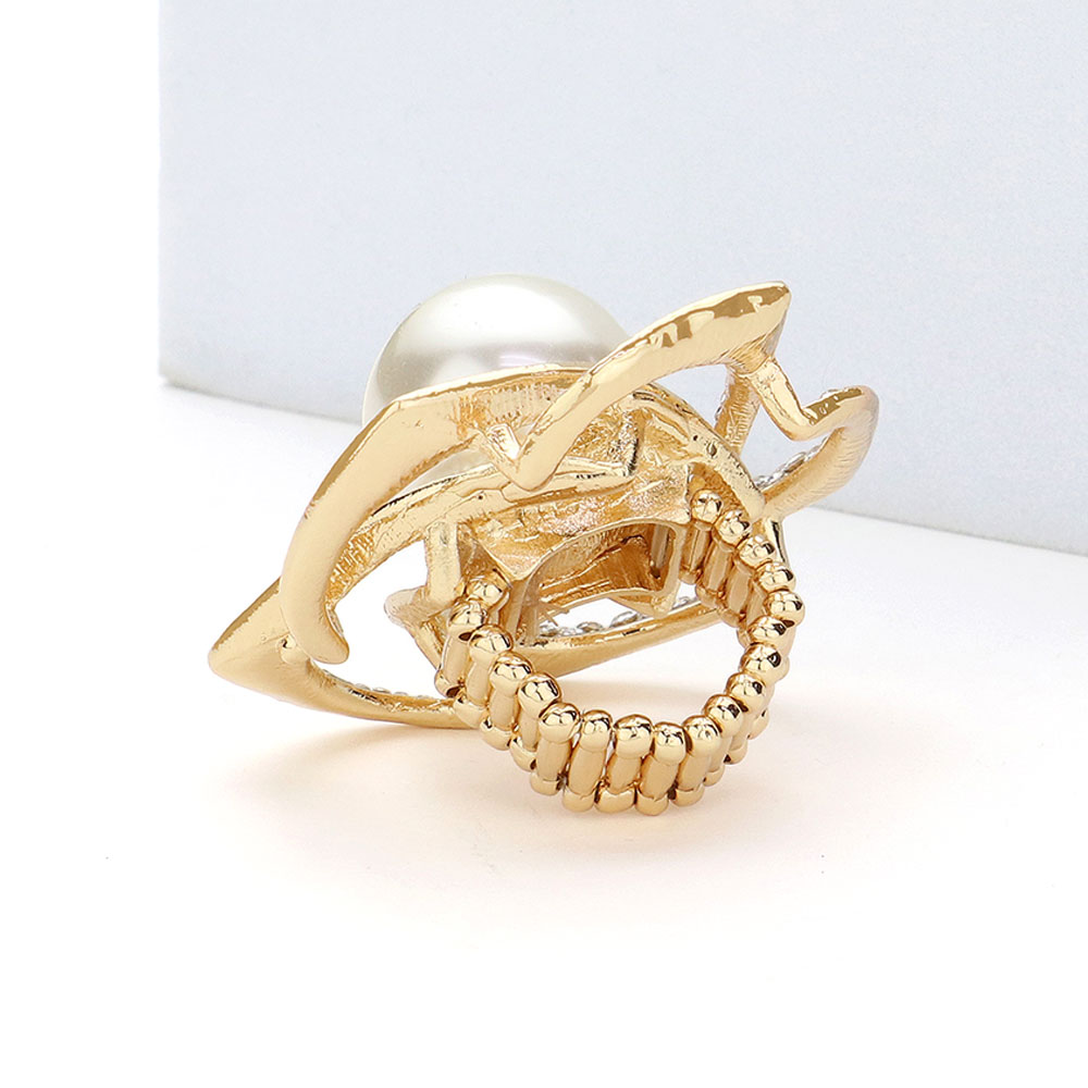 Pearl Centered Rhinestone Flower Stretch Ring