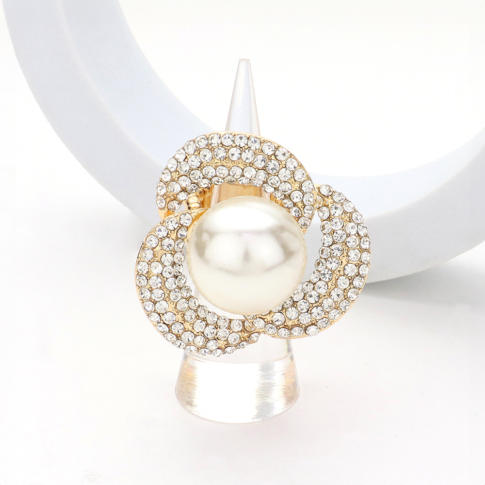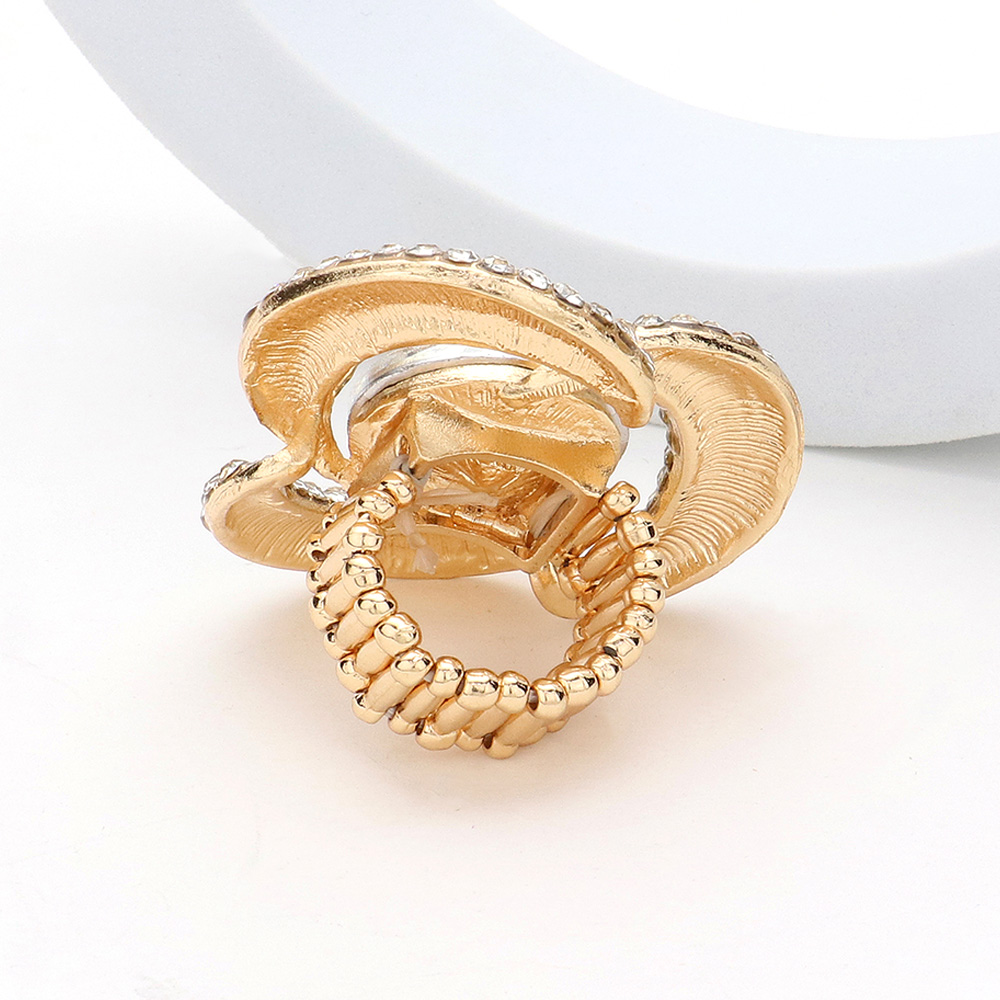 Pearl Centered Rhinestone Paved Flower Stretch Ring