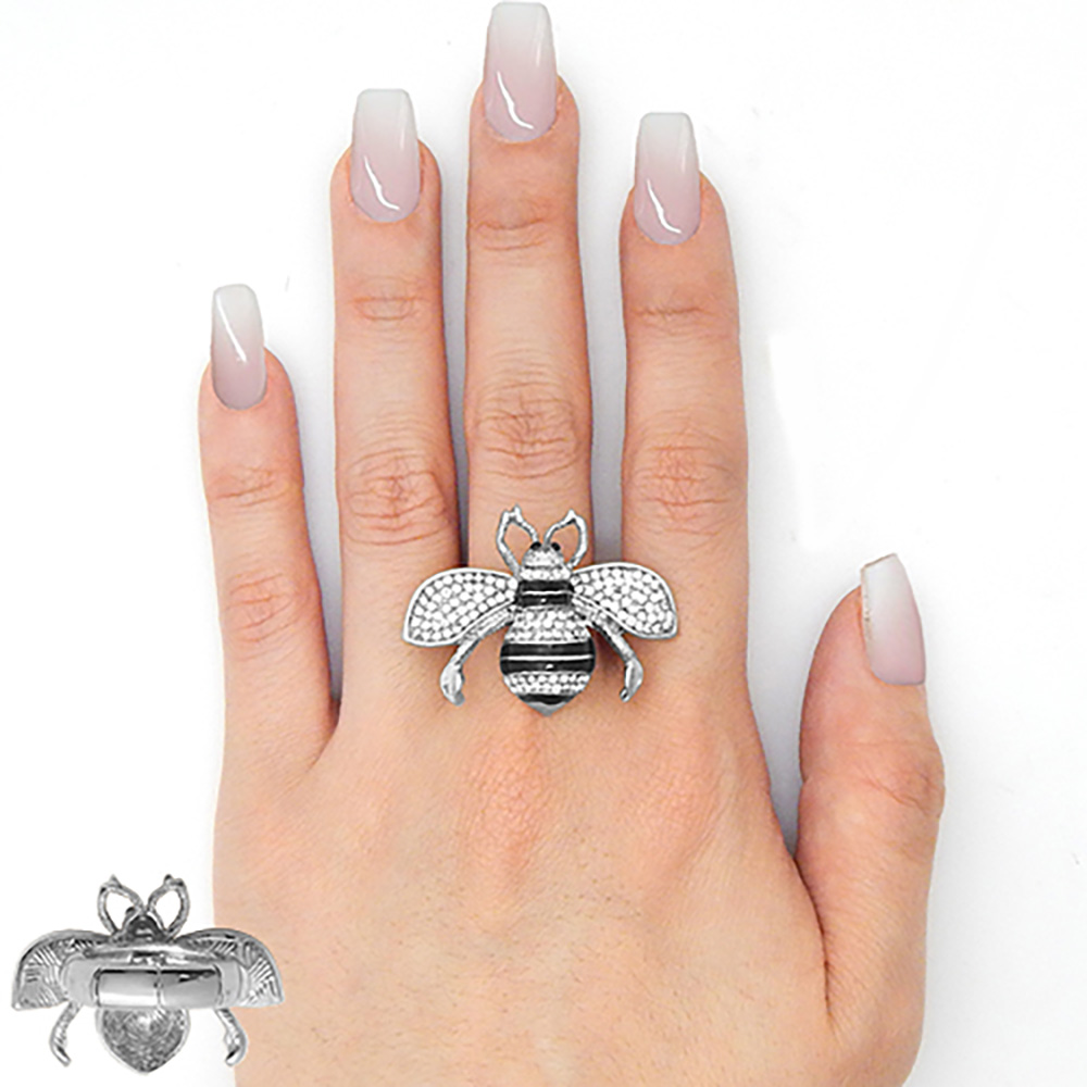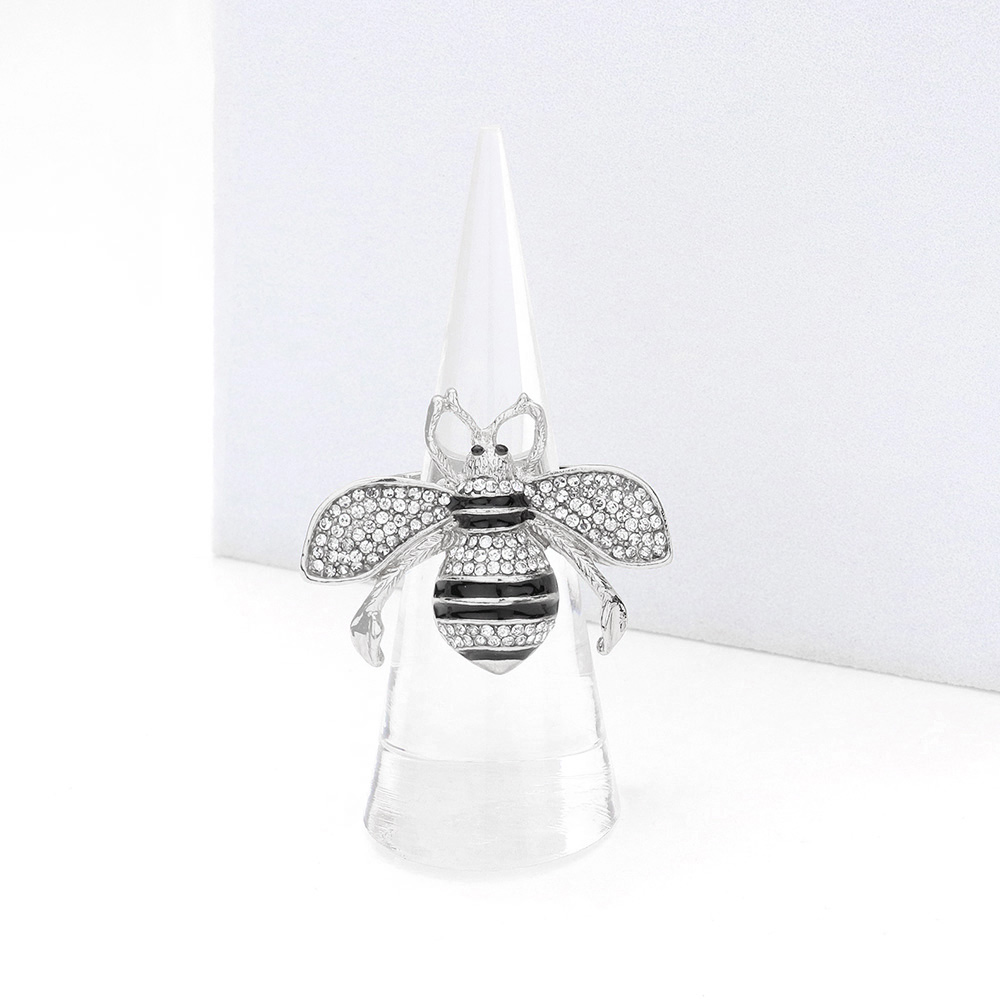 Rhinestone Embellished Honey Bee Stretch Ring