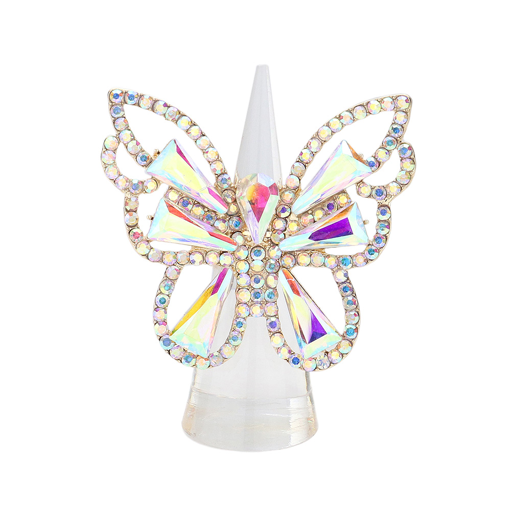 Rhinestone Embellished Butterfly Teardrop Stone Link Dangle Evening Earrings