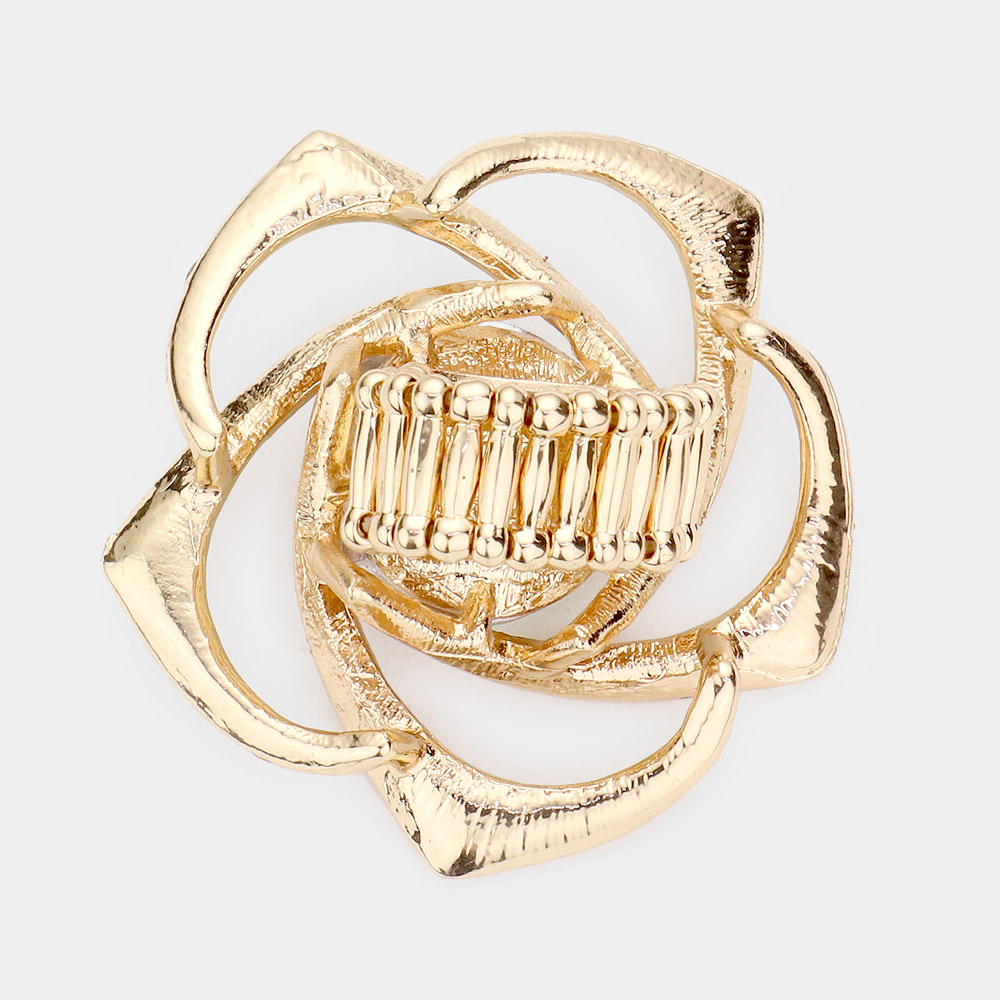 Round Stone Centered Rhinestone Flower Stretch Ring