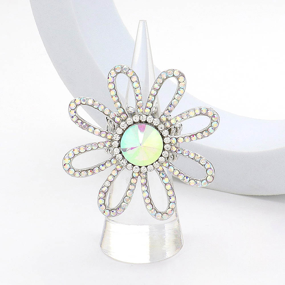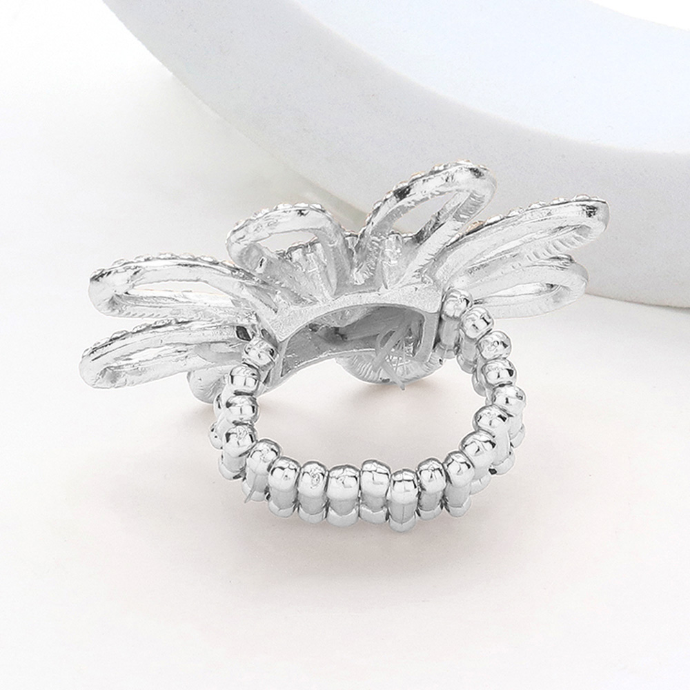 Round Stone Pointed Rhinestone Paved Flower Stretch Ring Round Stone Pointed Rhinestone Paved Flower Stretch Ring