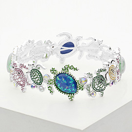 Palm Tree Abalone Accented Metal Oval Stretch Bracelet