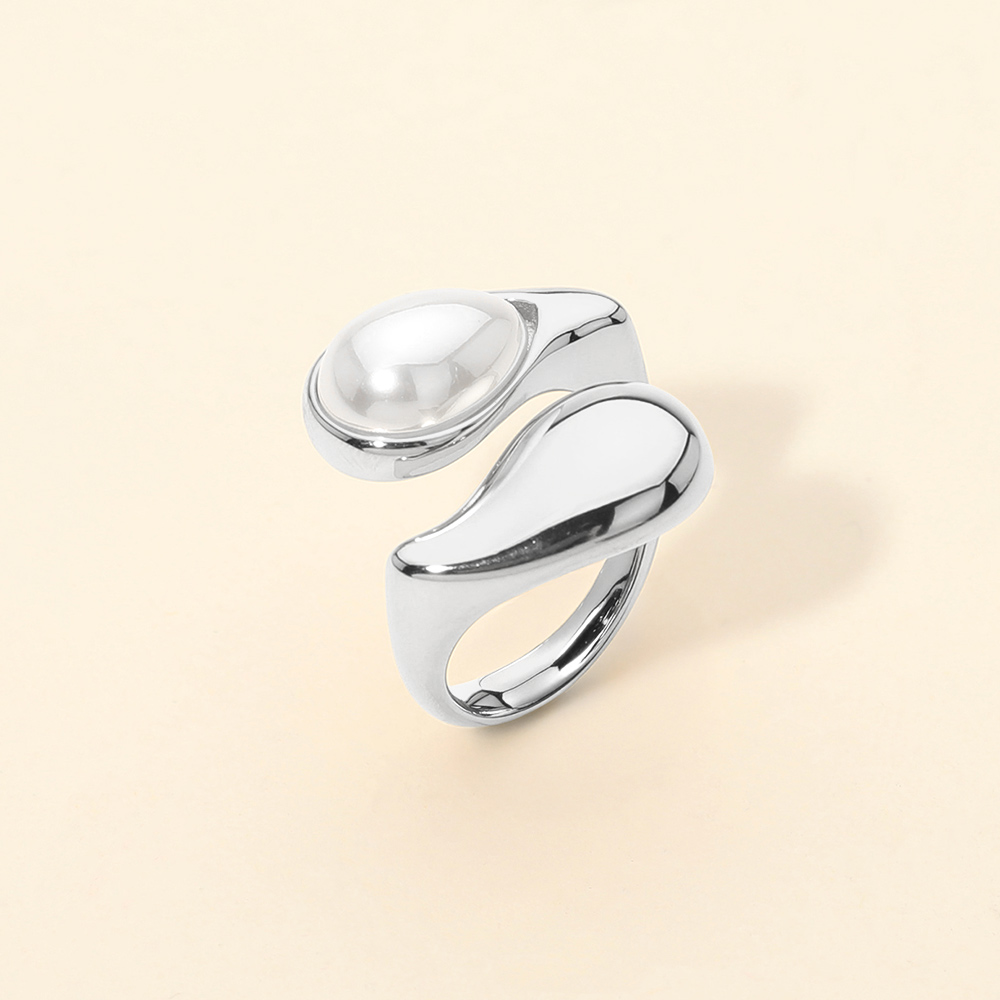 SECRET BOX_Stainless Steel Pearl Dome Accent Wrap Statement Ring