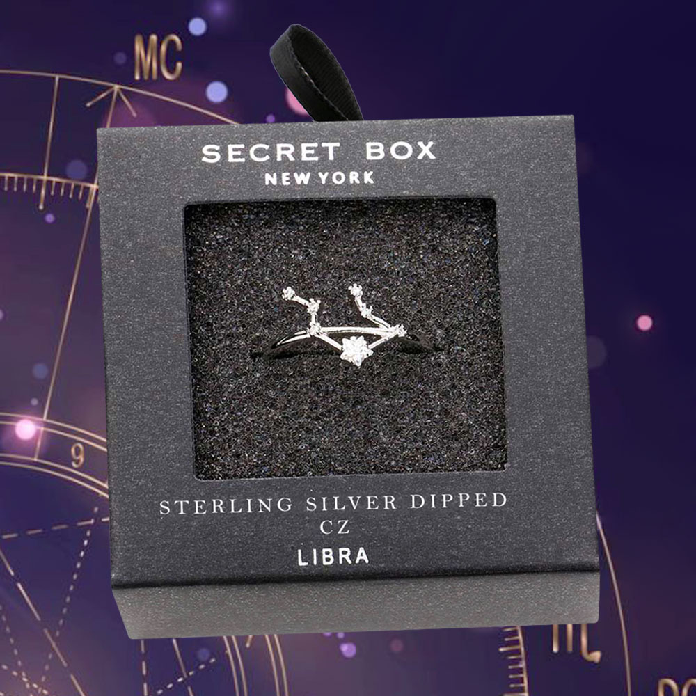 Secret Box _ Sterling Silver Dipped CZ Zodiac Sign Libra Ring