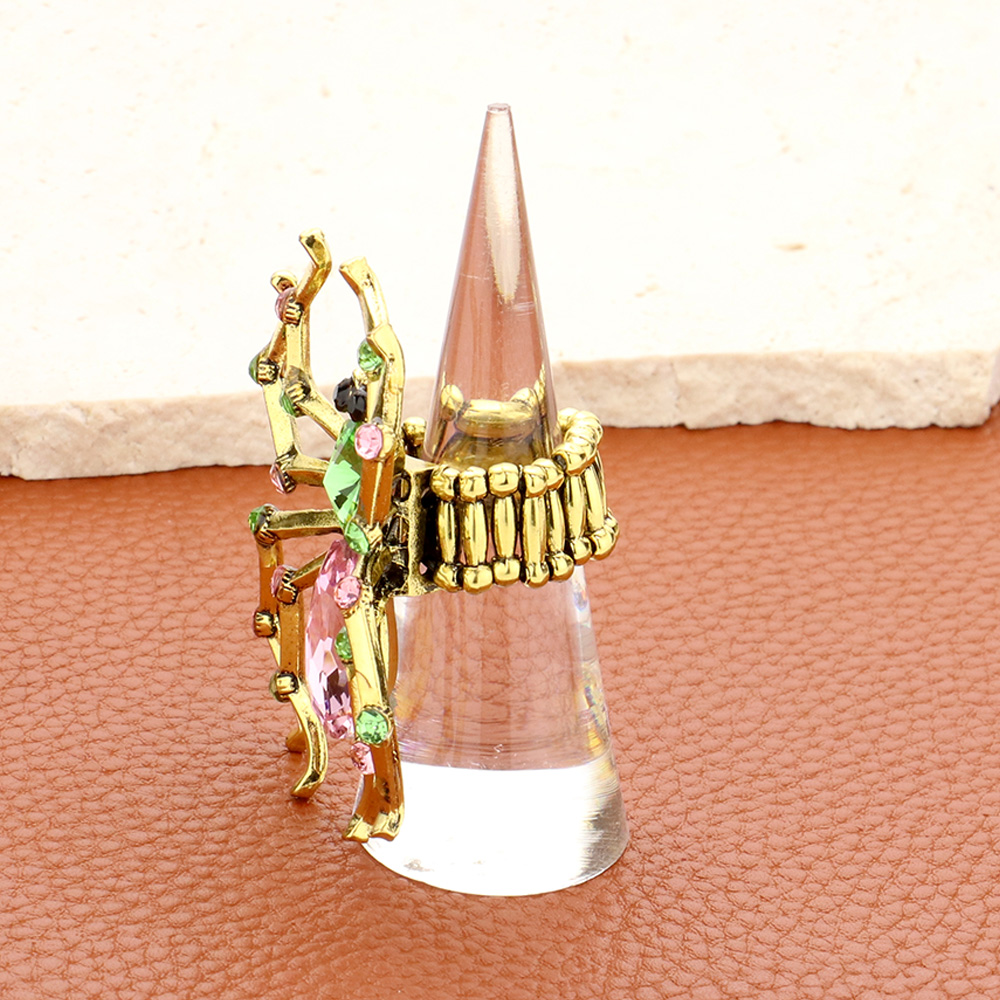 Rhinestone Paved Butterfly Flower Charm Station Statement Necklace