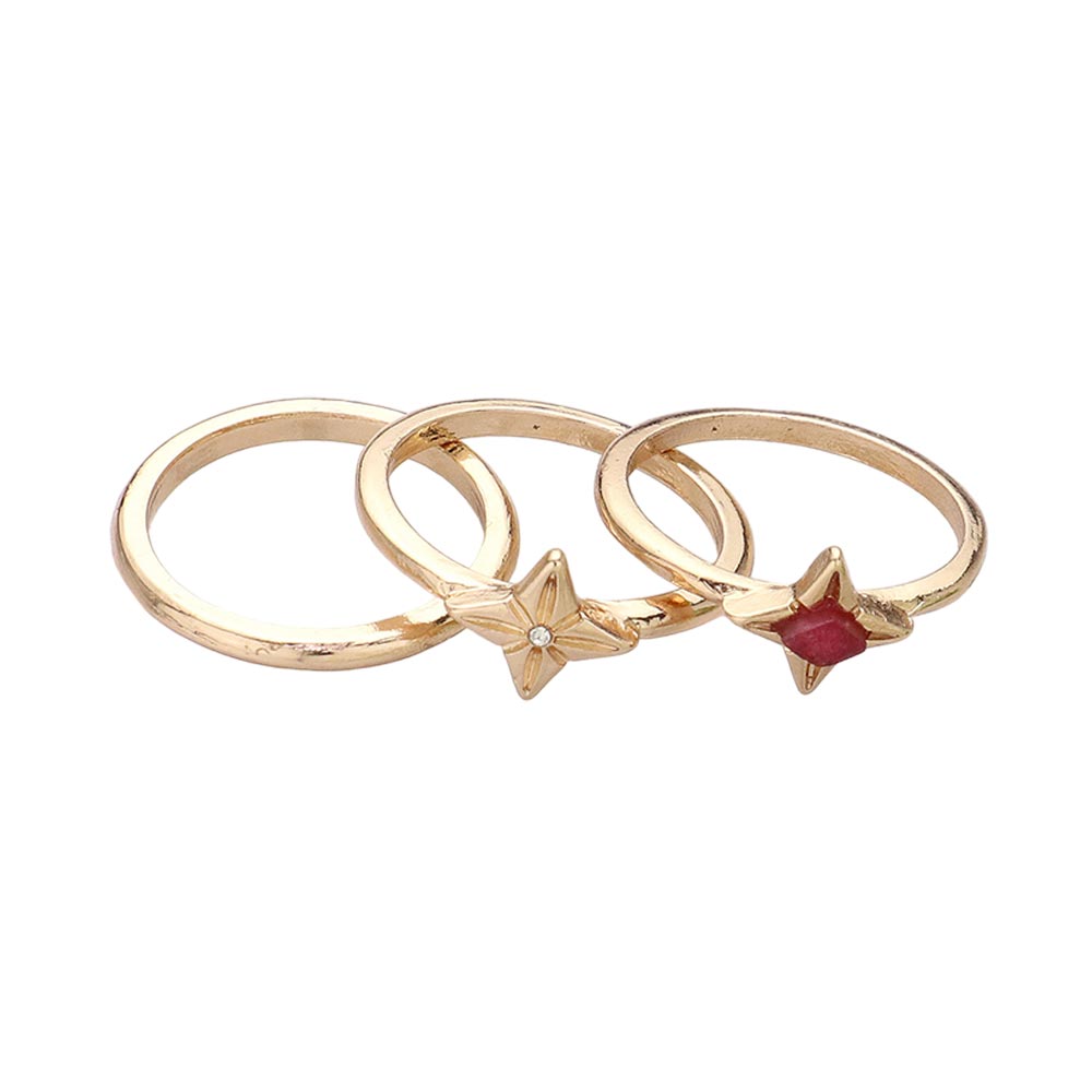 3PCS - Semi Precious Rhinestone Embellished Metal Band Mixed Rings