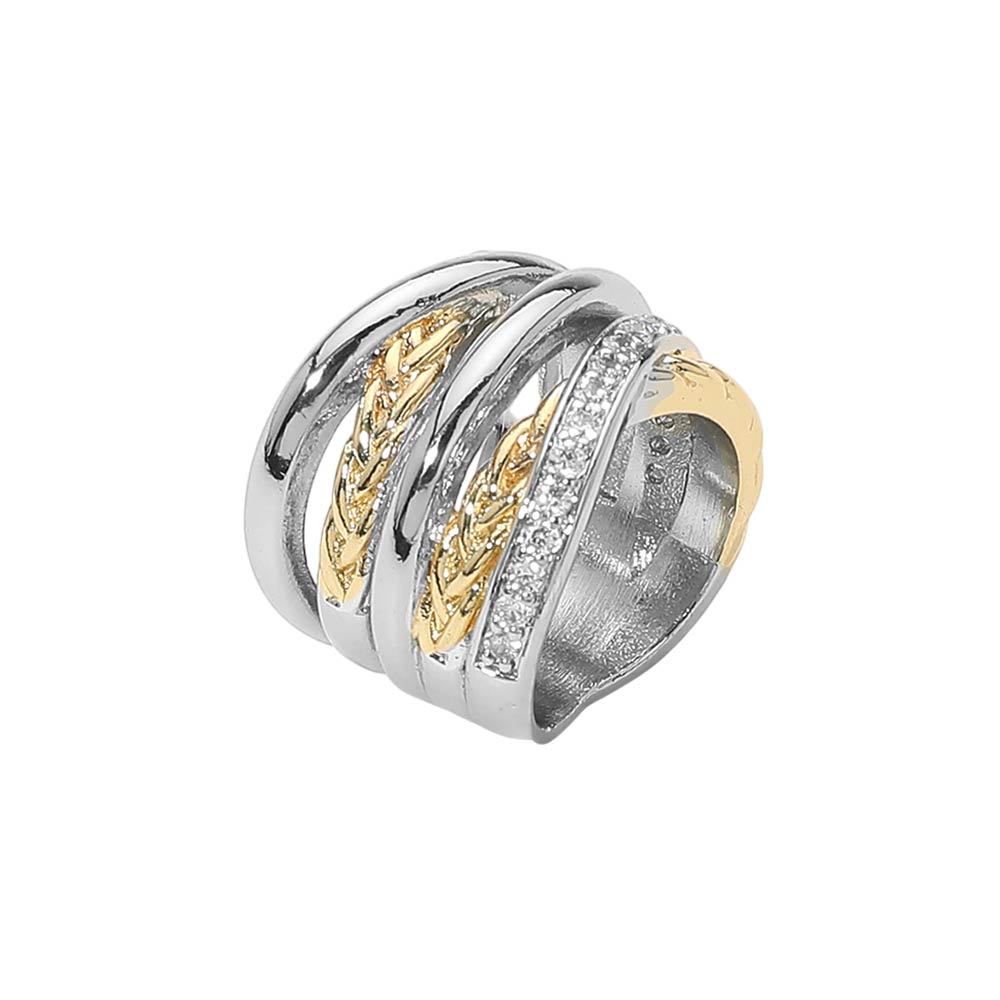 Bold Two Tone CZ Pave Multi Band Statement Ring
