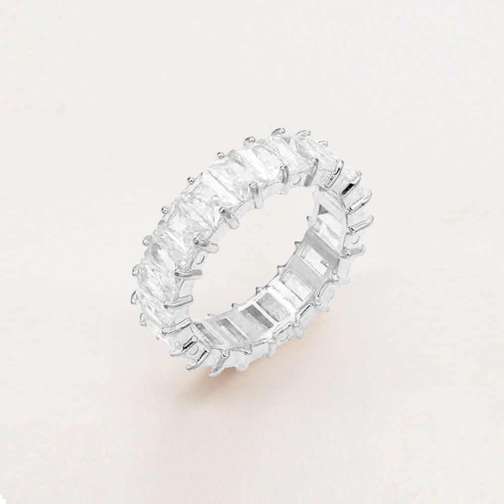 CZ Rectangle Stone Embellished Stainless Steel Ring