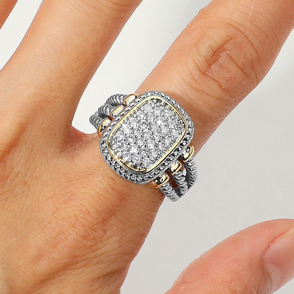 Details • Size : 0.5" H • Sophisticated ring featuring a rectangular pave-set top framed by twisted detailing and a textured band. A bold yet refined accessory that adds sparkle and elegance to any look. Ideal for formal events or elevating everyday style with timeless charm. • CZ Cubic Zirconia