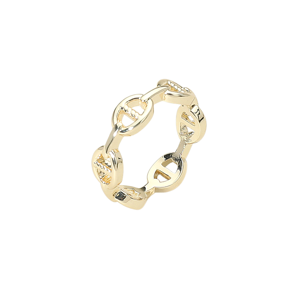 Details • Size : 0.25" H • Refined and modern, this open link band ring features a polished linked design with subtle pave detailing. Its sleek symmetry and minimalist charm make it a versatile piece, ideal for stacking or wearing alone to add effortless sophistication to any outfit.