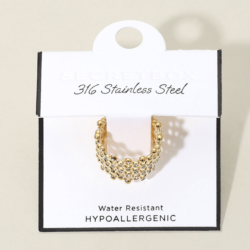 Details • Size : 0.6" H • Size 8 Only • Water Resistant • Showcase standout style with this openwork beaded statement ring featuring a bold, dimensional design crafted from polished spheres. Lightweight yet striking, it adds a touch of modern elegance and texture to both casual looks and evening outfits. • Hypoallergenic • Stainless Steel
