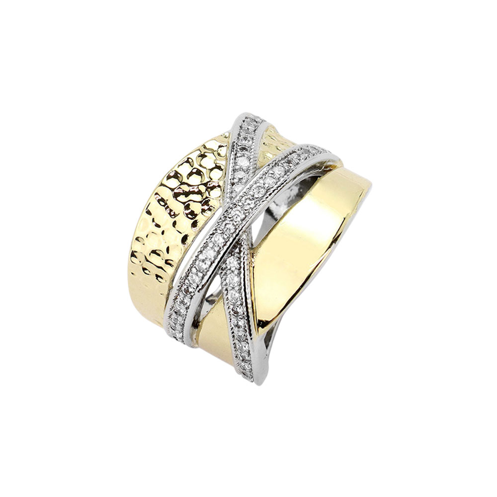 CZ Stone Paved Crisscross Pointed Two Tone Ring