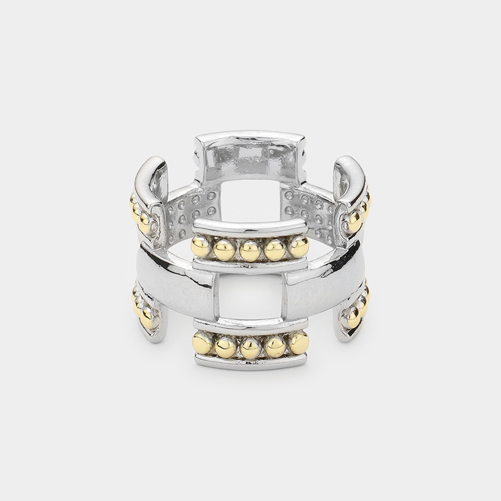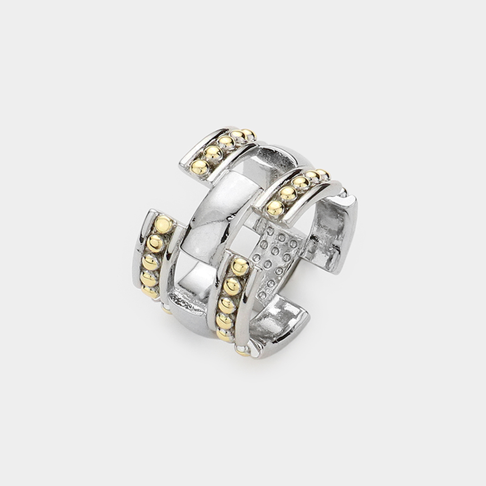 Cross Pointed Two Tone Textured Cable Metal Cuff Bracelet