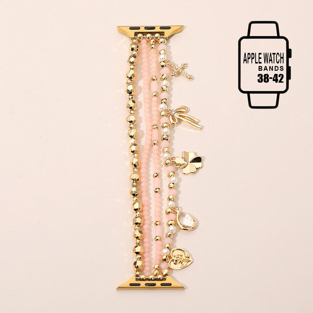 Bow Clover Heart Cross Charm Dangle Floral Ceramic Ball Pearl Beaded Multi Layered Apple Watch Band