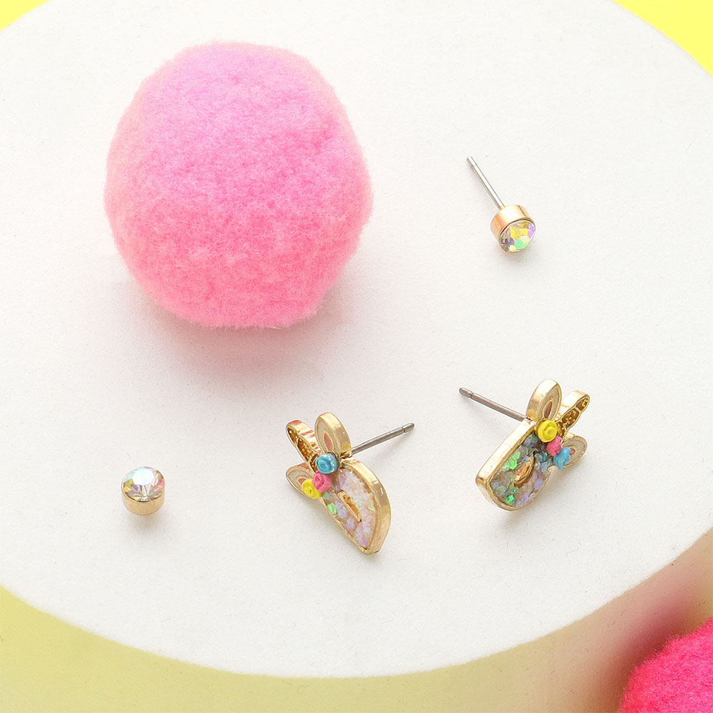 2Pairs - A Round Stone Unicorn Initial Monogram Stud Kids Earrings