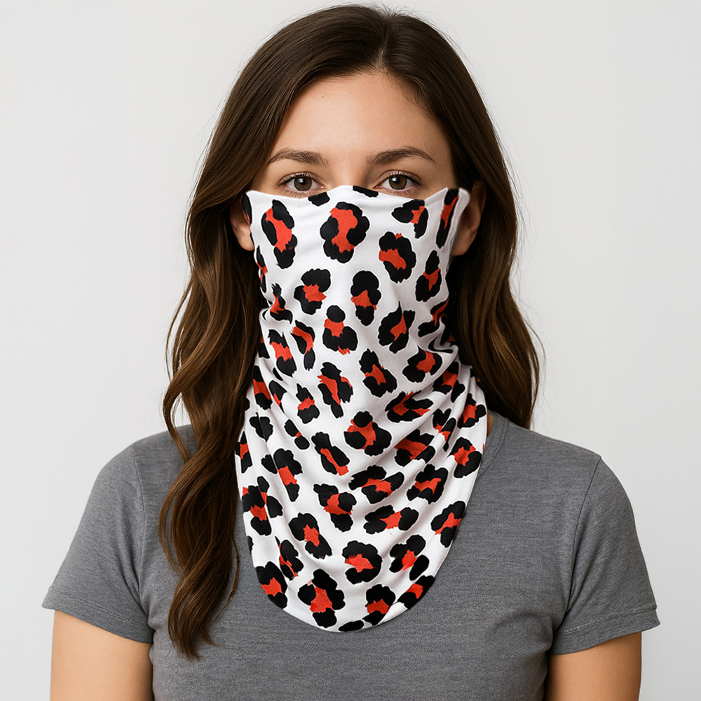 • Stay stylish and protected with this leopard print face and neck gaiter. Lightweight and breathable, it doubles as a face cover, scarf, bandana, or headband. A versatile accessory for everyday use, travel, sports, and outdoor adventures.