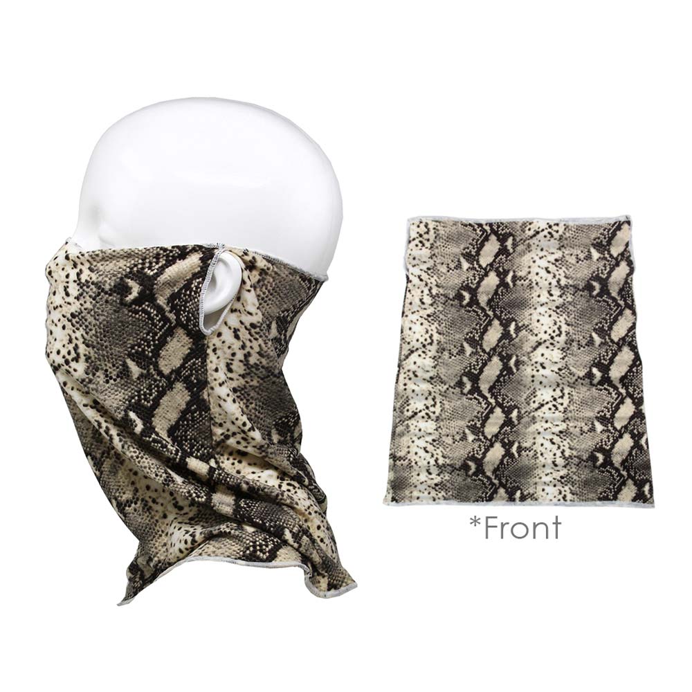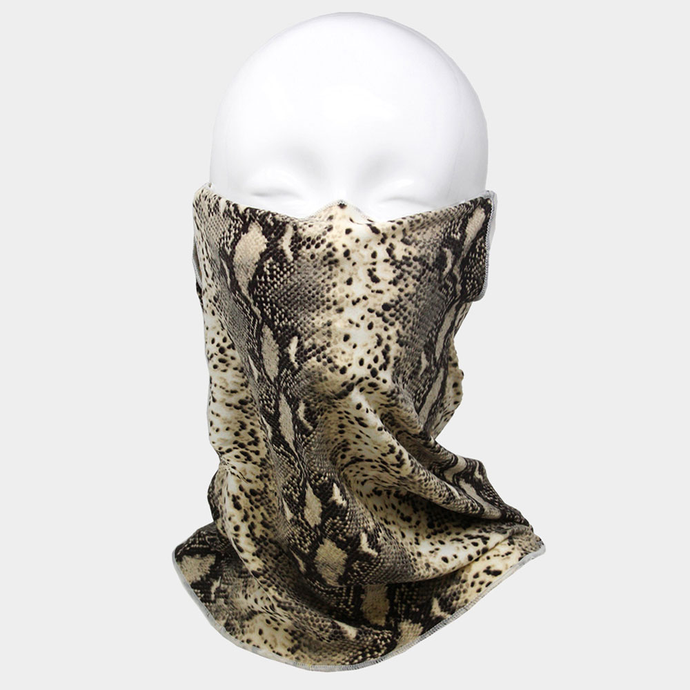 Details • 100% Polyester • Size : 12.2" X 9.4" X 12.6" • Can be worn as Mask or Scarf • Has Ear Hole • Elevate your style with this snakeskin print face and neck gaiter. A versatile accessory designed for use as a face cover, scarf, bandana, or headband. Lightweight and breathable, perfect for outdoor activities, travel, and everyday wear.