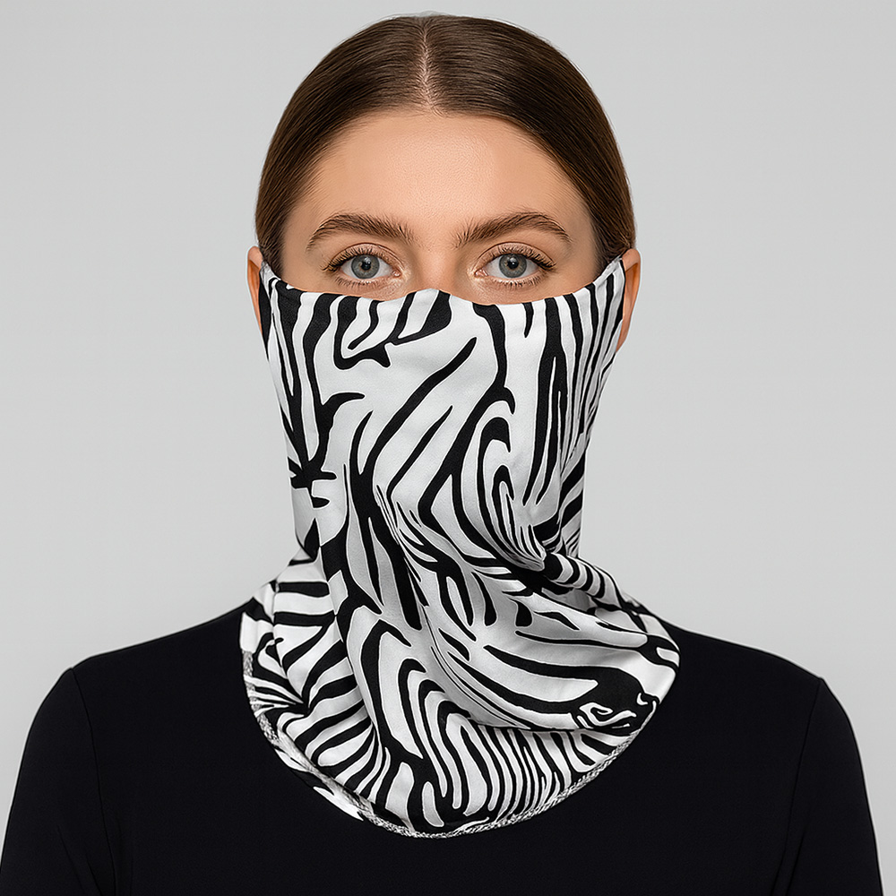 • Elevate your look with this zebra print face and neck gaiter. Versatile and breathable, it can be worn as a face cover, scarf, bandana, or headband. Perfect for outdoor activities, travel, sports, and casual everyday wear.