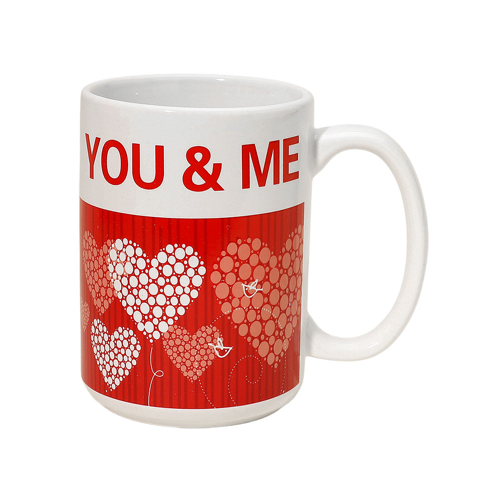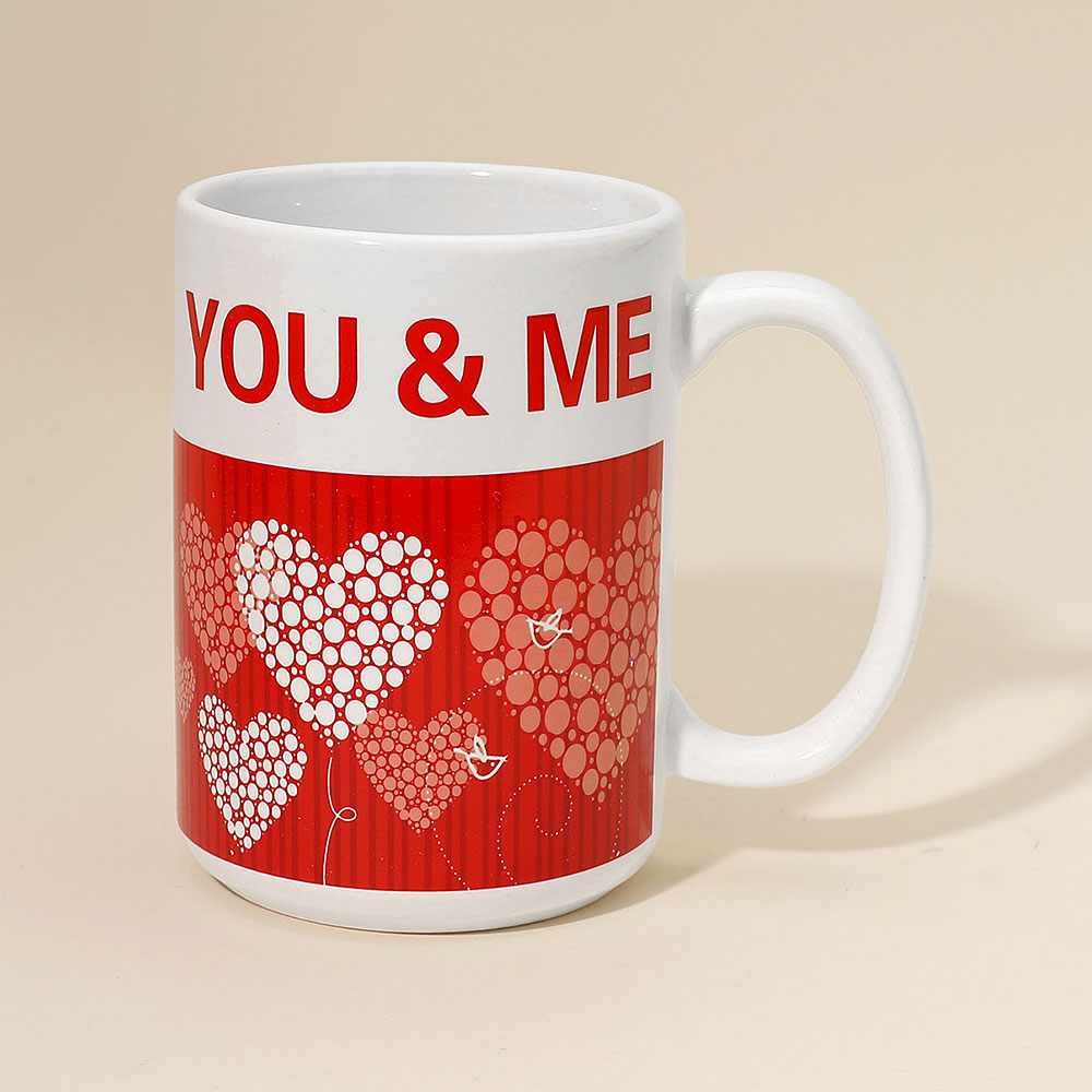 • Charming Valentine-themed coffee mug featuring a bold “You & Me” message and heart balloon design. Perfect for gifting, daily use, or seasonal dĂ©cor. A great way to add a touch of love to morning routines, office desks, or special occasions. Ideal for Valentine’s Day gifting.