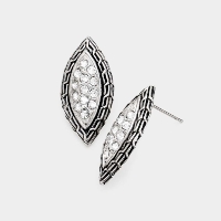 Oblique Lined Rhinestone Embellished Curved Enamel Earrings
