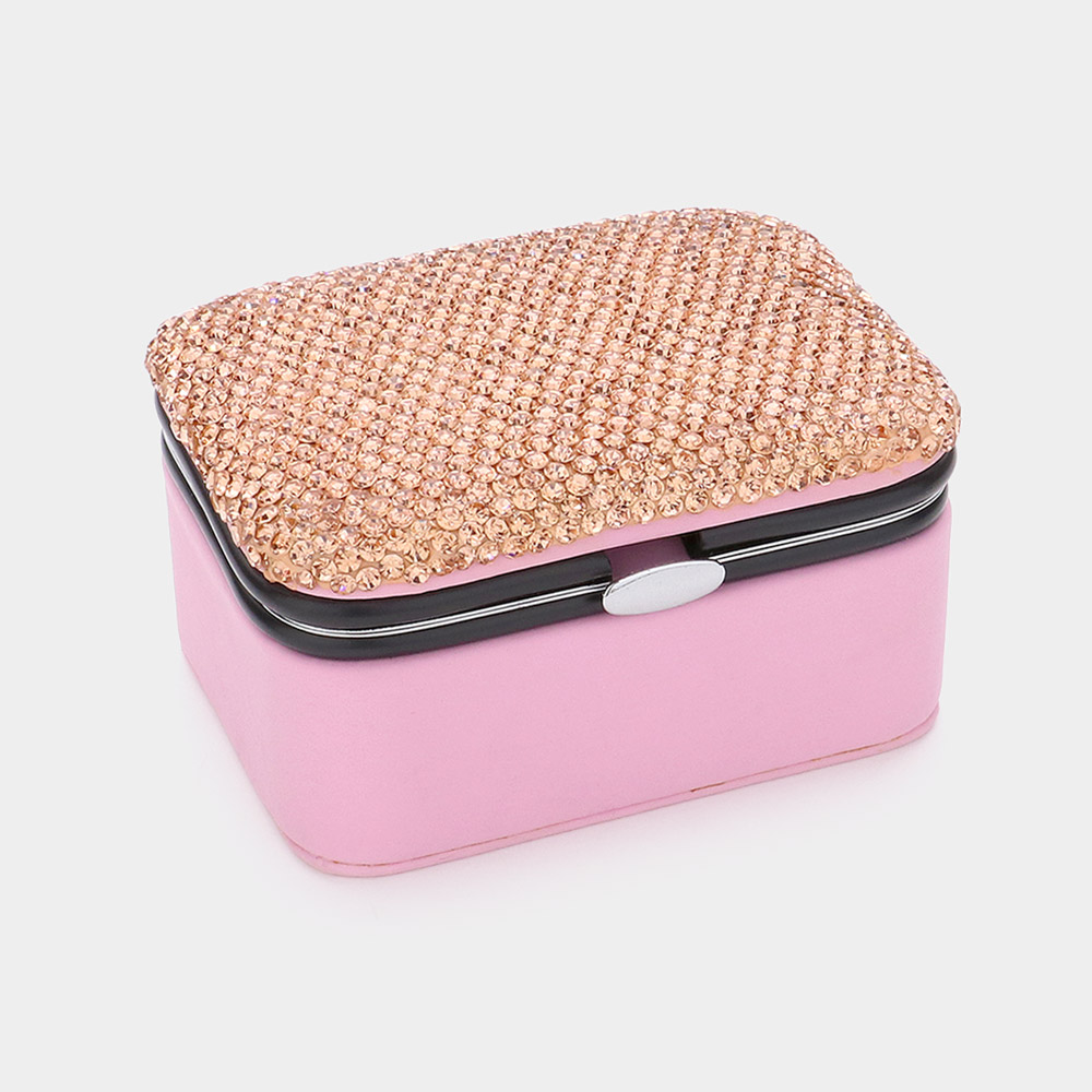Rhinestone Trimmed Round Stone Stud Evening Earrings