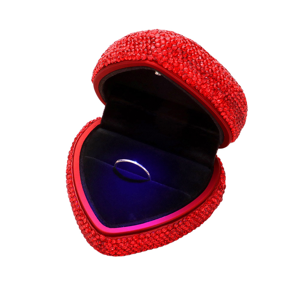 LED Light Bling Studded Heart Shaped Jewelry Ring Case