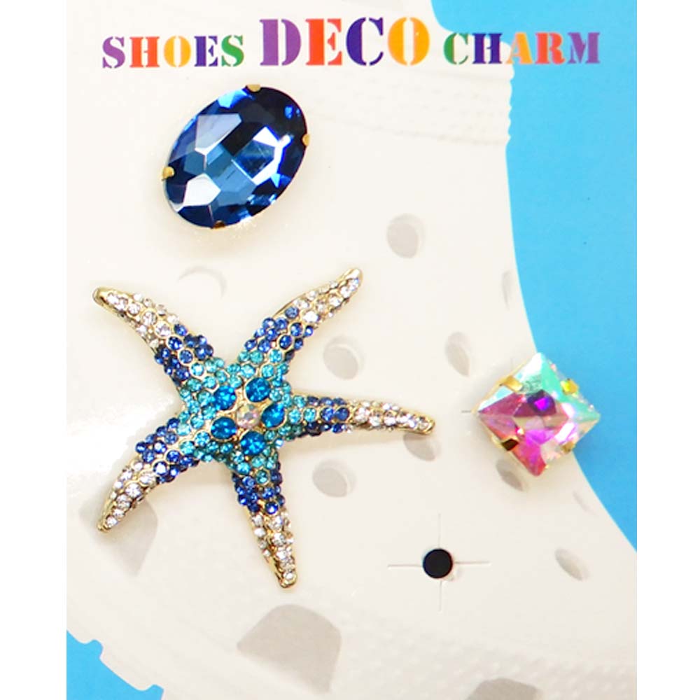 3PCS - Starfish Oval Square Stone Shoes Deco Charms