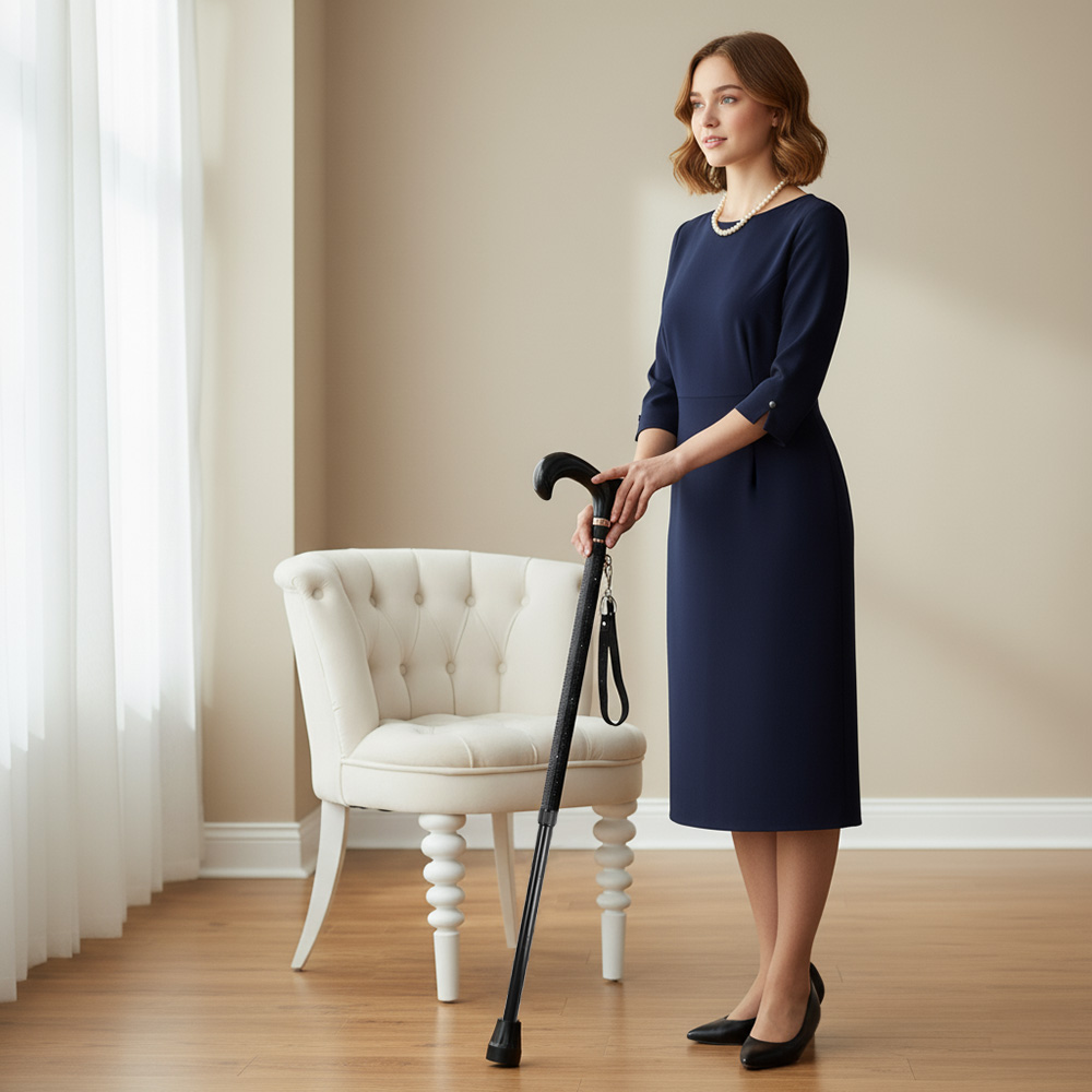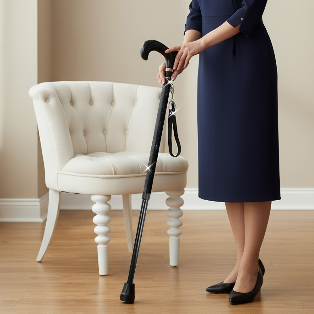 Details • Size : 24" L - 38" L, Adjustable • Detachable Keychain • Enhance daily mobility with this adjustable walking cane designed for comfort and stability. Its ergonomic handle and secure, slip-resistant tip offer confident support, while the lightweight build makes it easy to carry. A stylish pattern adds a modern touch, perfect for everyday use.