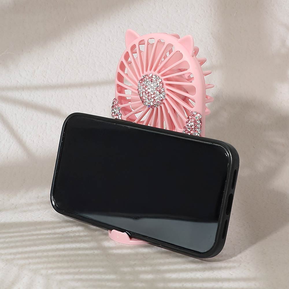 Details • Size : 3.2" X 5.25" X 1.5" • One Fan Holder Included • USB Charging Cable Included • This cat ear mini handheld fan features a compact design with decorative sparkle accents and a built-in stand for easy use. Lightweight and portable, it delivers refreshing airflow for travel, events, and everyday comfort. A fun novelty accessory that blends cute style with practical cooling, making it perfect for gifting, parties, and on-the-go use.
